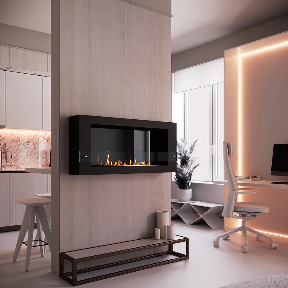 Биокамин SteelHeat WALL LONG 1200 черный, стемалит